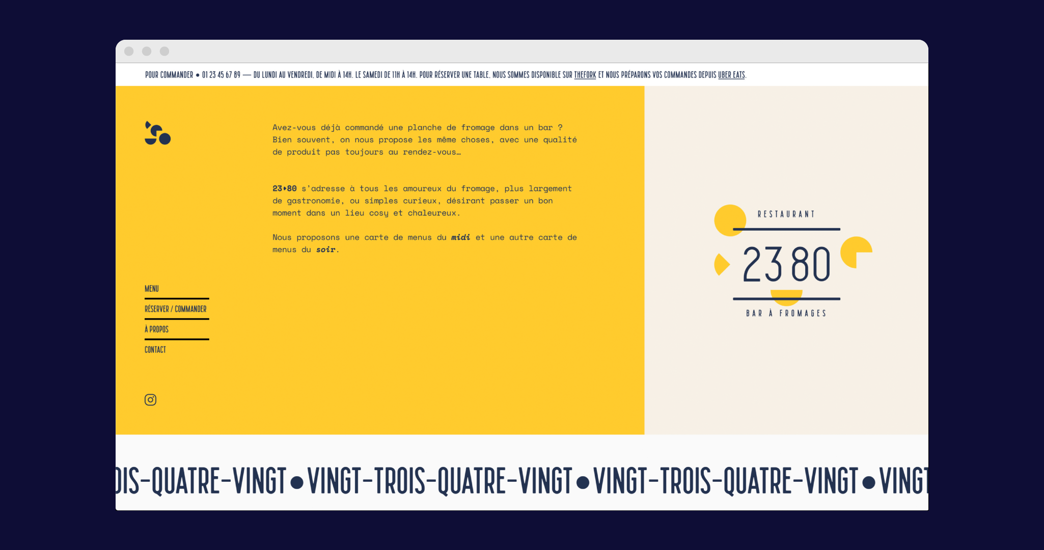 Création de l’identité visuelle pour un bar/restaurant de fromage français proposant une carte de produits locaux aux heures phares de la journée.